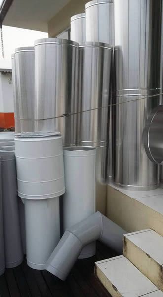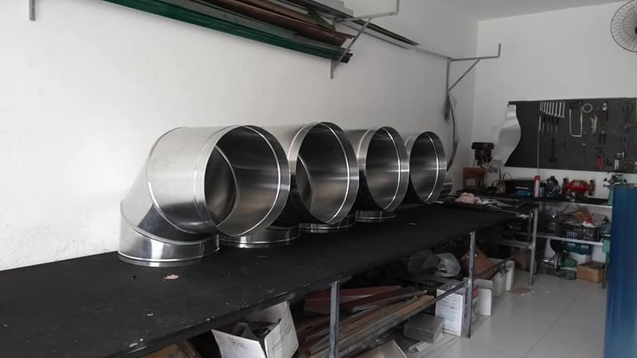Nossas tubulações metálicas são indicadas para sistemas de exaustão, circulação de gases, ar, vapores e muito mais. Produtos como exaustão para churrasqueiras prediais, dutos condutores, terminações como exaustores eólicos, Esputinik e chapéu anelado, tubulações metálicas industriais, prediais, dutos para chaminés e outros.